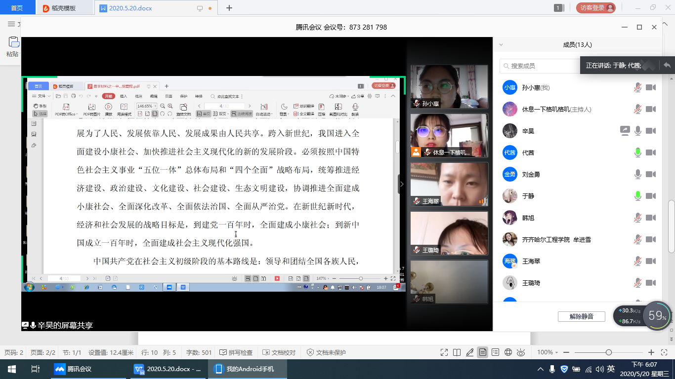 2020年5月20日18时,信息工程系视觉传达设计专业学生党支部书记辛昊带领支部12位党员在“腾讯会议”平台开展"以学生为中心"教育教学思想大讨论第二阶段主题党日活动。