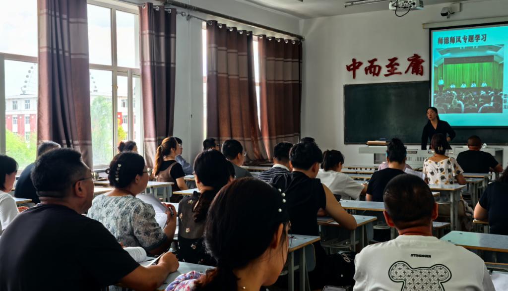 会上,副主任刘春媛首先说明了此次师德培训的目的和意义,随后学习习近平总书记关于弘扬教育家精神的重要指示精神,和黑龙江省教育系统勤廉龙江建设工作会议精神。还学习了党纪六项纪律和时代楷模徐利民的先进事迹。全体教职工通过交流发言,分享学习体会。