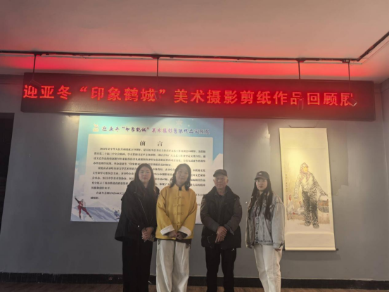 展览由齐齐哈尔市文学艺术界联合会、齐齐哈尔市体育局、齐齐哈尔市融媒体中心、市政协文化文史和学习委员会主办,齐齐哈尔市美术家协会、齐齐哈尔市摄影家协会、齐齐哈尔市民间文艺家协会承办,恒昌中学美术馆协办,展出美术作品80幅,摄影作品67幅,剪纸作品24幅。在黑龙江省非遗传承人戚玉恒老师的指导下,我专业5位教师和2名学生的6幅作品也展览在其中,姜岩、王昀碧和吴兵三位教师在展览中认真浏览了各类作品,对剪纸作品尤为关注,对作品的技艺和创意表示高度赞赏。并与剪纸艺术家进行了交流,讨论了剪纸艺术的传承、发展以及视觉传达设计与传统艺术的结合。