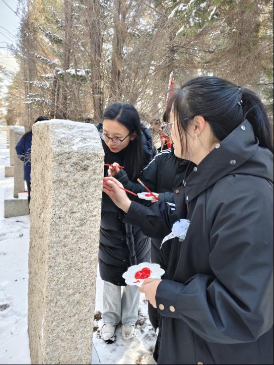 3月27日上午,动画专业师生赴齐齐哈尔西满烈士陵园开展“缅怀英烈·描红铭志”主题教育实践活动。本次活动由专业教师张振兴带队,动画231班全体同学参与,通过为烈士墓碑描红、祭扫等方式,深切缅怀革命先烈,传承红色基因。