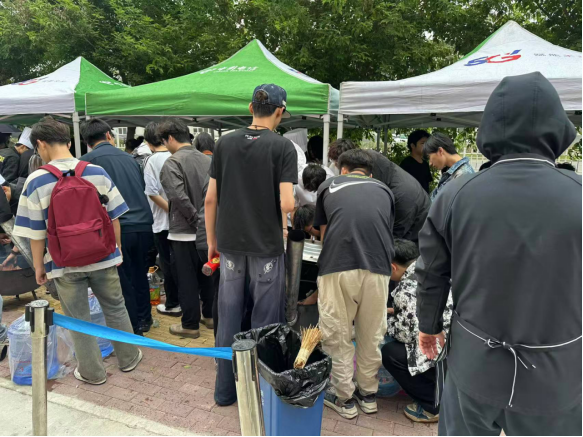 这场美食盛宴不仅是味蕾的享受,更是情感的联结。总务处的特色美食、学工处的小食小吃、bevictor伟德国际1946的铁锅炖、机电学院的手工水饺、建筑与管理学院的鹤城烧烤、医学院的冷串糕点……各学院特色美食汇聚成一条充满温情的“毕业美食街”。毕业生们穿梭于摊位间,与老师话别、与同窗合影,将四年的点滴记忆封存在舌尖,镌刻进心田。