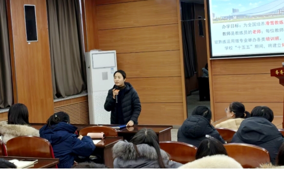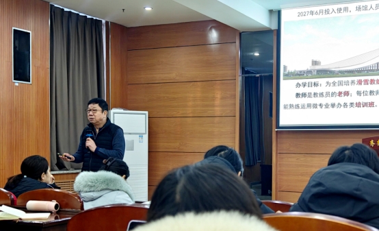 会上,曹勇安围绕室内滑雪馆建设及配套人才培养工作进行部署。他指出,学校规划建设的室内滑雪馆预计于明年6月正式投入运营。为此,学校已将“为全国滑雪产业培养专业教练员与场馆运营管理人员”明确纳入办学目标,正着力构建符合产业需求的特色化人才培养体系。他强调,学校组建艺术与体育学院,旨在进一步优化学科专业布局,拓展特色办学领域,顺应新时代教育发展趋势与社会对专业人才的需求。学院的成立是学校推进内涵式发展的重要举措,他希望全体教职工以高度的责任感和使命感,积极参与并推动学校建设,共同实现学校跨越式发展。