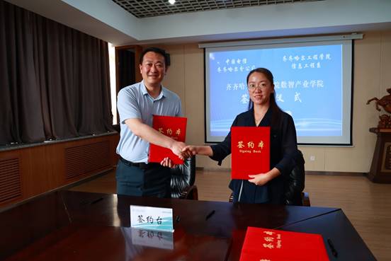 刘春媛副主任代表信息工程系分别与中国电信齐齐哈尔分公司、北京华育兴业科技有限公司、青岛百杉软件科技有限公司三家企业签订《伟德国际1946数智产业学院校企共建框架协议书》。